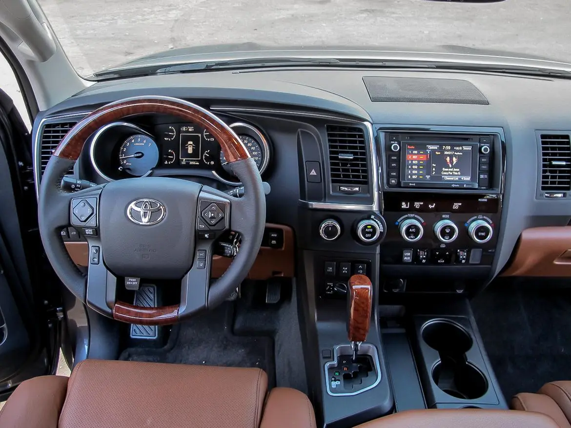 Sequoia отстает в плане изысканности по сравнению с другими большими внедорожниками. Интерьер обязательно нужно модернизировать; сейчас он выглядит и чувствует себя устаревшим. Сенсорный экран по сегодняшним меркам невелик, экономия топлива остается низкой (13-17 миль на галлон), не было зажигания без ключа, и невозможно было открыть багажник с помощью брелка.