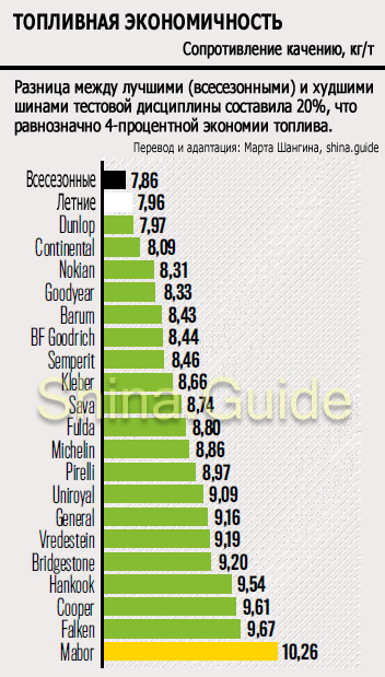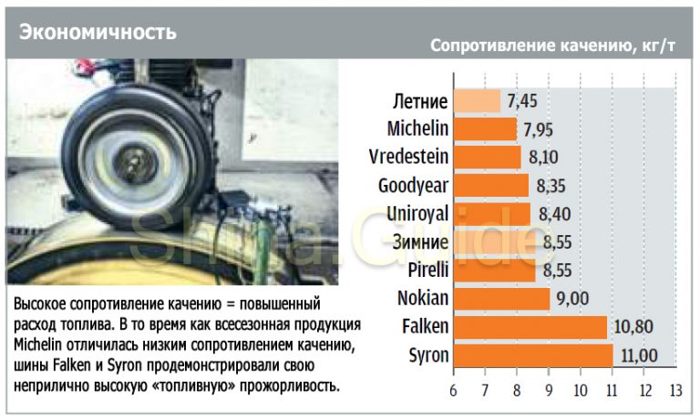 Кроме жёсткости резины на сопротивление качения существенно влияет ширина покрышки. Чем она шире, тем хуже топливная эффективность. Кстати, там, где используются широкие покрышки, внушительная ширина и у дисков, а чем шире диск, тем больше затраты у двигателя. Снова топливная эффективность в этом случае – ниже.