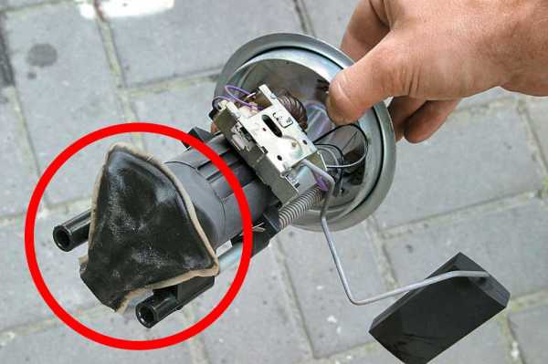 Это проявляется потерей мощности двигателя, рывками машины при движении и, как ни странно, перерасходом топлива. Приходится снимать бензонасос и проводить его обслуживание. Если этого не сделать, то ездить на машине станет невозможно, топливо просто перестанет поступать к форсункам. Причина этого хорошо видна на фото бензонасоса с забитой сеткой.