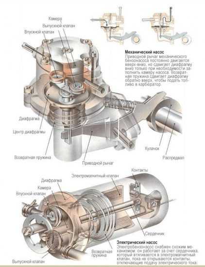 Принцип работы топливного насоса во многом зависит от особенностей его конструкции. На данный момент распространены электрические и механические насосы, схема топливных насосов имеет значительное отличие.