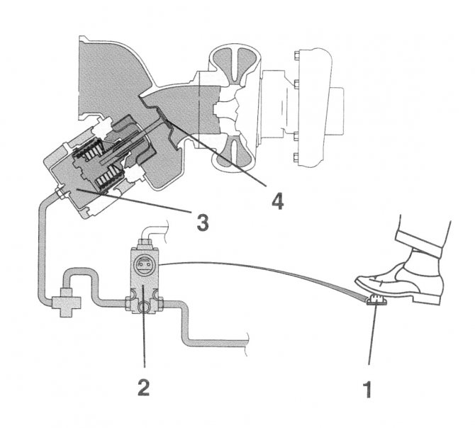 Включение индукционного тормоза и регулирование тормозных сил осуществляется в зависимости от положения педали тормоза – чем больше давление на педаль, тем больше давление на тормоз.