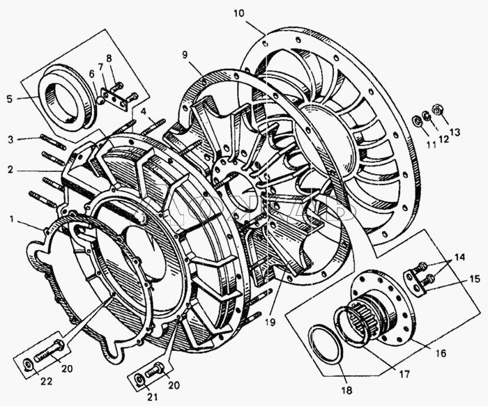 Из чего состоит ретардер: С — воздушный зазор регулировочных прокладок, E — воздушный зазор, 1 — передний ротор (с крыльчаткой для более эффективного охлаждения при работе), 2 — задний ротор (задней оси), 3 — передний корпус, 4 — задний корпус, 5 — вал, 6 — подшипник, 7 — уплотнительная манжета, 8 — соединительный фланец, 9 — обмотка, 10 — полюс, 11 — концентратор, 12 — стопорные кольца. Схема подключения катушек.