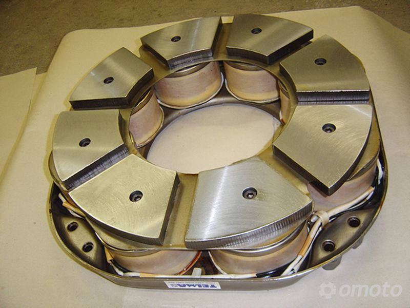 После нажатия на педаль тормоза (или перемещения подрулевого переключателя), в зависимости от положения педали передается определенное напряжение от аккумуляторных батарей к катушкам, расположенным в статической части retarder’a. В катушках создаются вихревые токи, которые способствуют образованию сил действующих противоположно вращению роторов и как следствие, приводящих к торможению и остановке транспортного средства. Ретардер состоит из статора и двух роторов, (два диска с крыльчаткой, соединенные с вращающими их карданными валами.) Они установлены практически вплотную друг к другу (между ними существует небольшой зазор для того чтобы избежать вредного контакта).