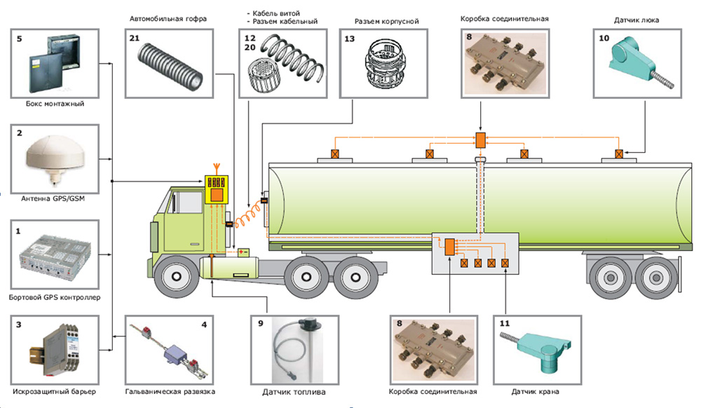 В автоцистернах топливо разделено на множество отсеков. Это позволяет разделить разные сорта топлива. Таким образом, грузовики могут доставить все виды топлива на станцию технического обслуживания за одну поездку.