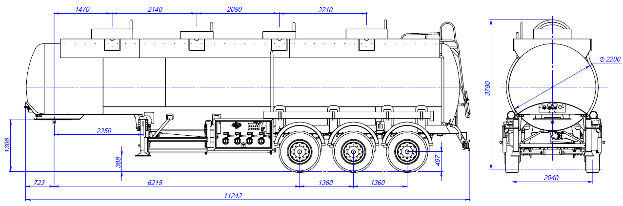 1.18.20.1. Габаритные размеры авиатопливозаправщиков не должны превышать: