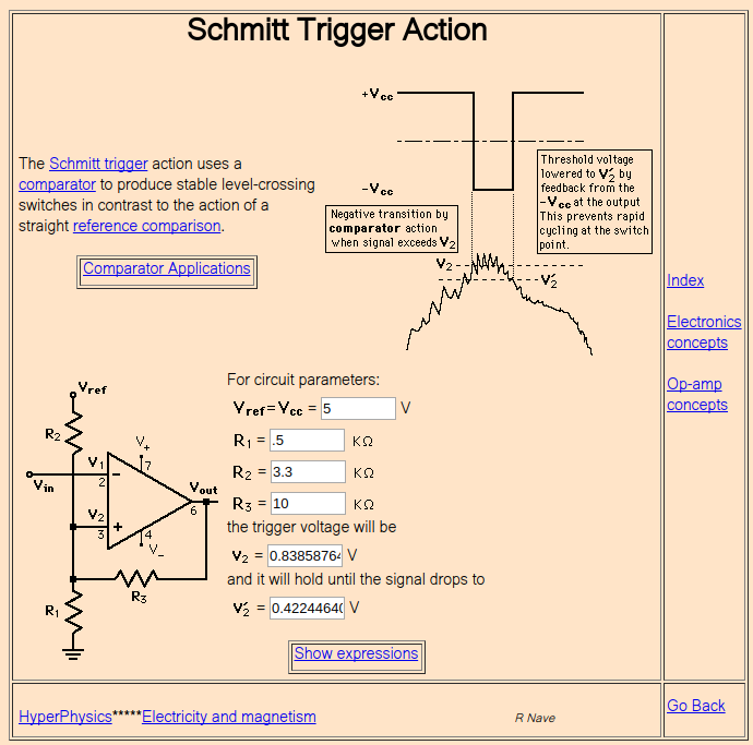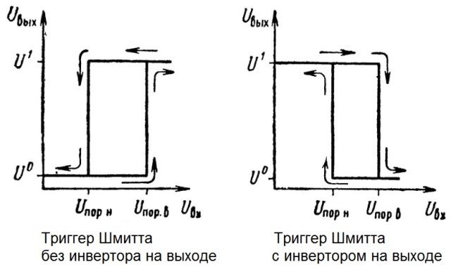Π’ΡΠΈΠ³Π³Π΅Ρ Π¨ΠΌΠΈΡΡΠ° ΠΈΠΌΠ΅Π΅Ρ ΡΠ²ΠΎΠ΅ ΠΎΡΠ»ΠΈΡΠΈΠ΅ ΠΎΡ Π΄ΡΡΠ³ΠΈΡ Π²ΠΈΠ΄ΠΎΠ² ΡΡΠΈΠ³Π³Π΅ΡΠΎΠ² ΡΠ΅ΠΌ, ΡΡΠΎ ΠΎΠ½ ΠΈΠΌΠ΅Π΅Ρ Π΅Π΄ΠΈΠ½ΡΡΠ²Π΅Π½Π½ΡΠΉ Π²Ρ ΠΎΠ΄ ΠΈ ΠΎΠ΄ΠΈΠ½ Π²ΡΡ ΠΎΠ΄ ΠΈ Π½Π΅ ΠΈΠΌΠ΅Π΅Ρ ΡΠ²ΠΎΠΉΡΡΠ²Π° ΠΏΠ°ΠΌΡΡΠΈ. Π’ΡΠΈΠ³Π³Π΅Ρ Π¨ΠΌΠΈΡΡΠ° ΡΠΎΡΡΠΎΠΈΡ ΠΈΠ· Π΄Π²ΡΡ ΠΈΠ½Π²Π΅ΡΡΠΎΡΠΎΠ², ΠΈΠΌΠ΅ΡΡΠΈΡ ΠΏΠΎΠ»ΠΎΠΆΠΈΡΠ΅Π»ΡΠ½ΠΎ-ΠΎΠ±ΡΠ°ΡΠ½ΡΡ ΡΠ²ΡΠ·Ρ ΠΠΠ‘ , Π² ΡΠ΅Π·ΡΠ»ΡΡΠ°ΡΠ΅ ΡΠ΅Π³ΠΎ ΡΠΎΡΡΠΎΡΠ½ΠΈΠ΅ Π²ΡΡ ΠΎΠ΄Π° ΡΡΠΈΠ³Π³Π΅ΡΠ° ΠΌΠΎΠΆΠ΅Ρ ΠΌΠ΅Π½ΡΡΡΡΡ Π»Π°Π²ΠΈΠ½ΠΎΠΎΠ±ΡΠ°Π·Π½ΠΎ. Π Π΄Π°Π½Π½ΠΎΠΉ ΡΡ Π΅ΠΌΠ΅ Π΄ΠΎΠ»Ρ Π²ΡΡ ΠΎΠ΄Π½ΠΎΠ³ΠΎ ΡΠ»Π΅ΠΊΡΡΠΈΡΠ΅ΡΠΊΠΎΠ³ΠΎ ΡΠΈΠ³Π½Π°Π»Π° ΠΠ£ ΠΏΠΎΡΡΡΠΏΠ°Π΅Ρ Π½Π° ΠΏΡΡΠΌΠΎΠΉ Π²Ρ ΠΎΠ΄ ΠΈ ΡΡΡΠ°Π½Π°Π²Π»ΠΈΠ²Π°Π΅Ρ ΡΡΠΎΠ²Π΅Π½Ρ, ΠΏΡΠΈ ΠΊΠΎΡΠΎΡΠΎΠΌ ΡΡ Π΅ΠΌΠ° Π±ΡΠ΄Π΅Ρ ΠΏΠ΅ΡΠ΅ΠΊΠ»ΡΡΠ°ΡΡΡΡ. ΠΠ£ ΠΏΠΎΠ΄ΠΊΠ»ΡΡΠ΅Π½ ΠΊ Π΄Π²ΡΡ ΠΏΠΎΠ»ΡΡΠ½ΠΎΠΌΡ Π±Π»ΠΎΠΊΡ ΠΏΠΈΡΠ°Π½ΠΈΡ Π½Π° 5 Π²ΠΎΠ»ΡΡ. Π‘ΠΎΠΏΡΠΎΡΠΈΠ²Π»Π΅Π½ΠΈΡ R1 ΠΈ R2 ΠΈΠΌΠ΅ΡΡ Π·Π½Π°ΡΠ΅Π½ΠΈΡ 25 ΠΊΠΠΌ ΠΈ 10 ΠΊΠΠΌ.