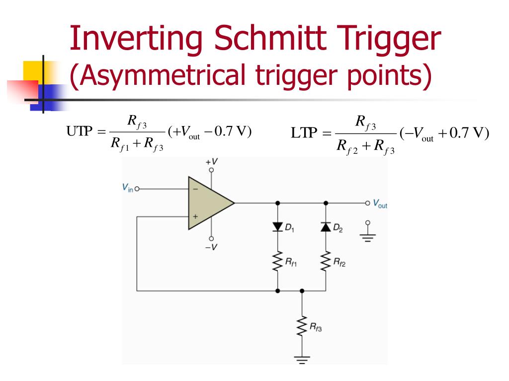 Π ΠΏΡΠΈΠ²Π΅Π΄Π΅Π½Π½ΡΡ Π²ΡΡΠ΅ ΡΡ Π΅ΠΌΠ°Ρ Π΄Π΅Π»ΠΈΡΠ΅Π»Ρ Π½Π°ΠΏΡΡΠΆΠ΅Π½ΠΈΡ Π½Π°ΠΏΡΡΠΆΠ΅Π½ΠΈΠ΅ Π½Π° Π½Π΅ΠΈΠ½Π²Π΅ΡΡΠΈΡΡΡΡΠ΅ΠΌ Π²Ρ ΠΎΠ΄Π΅ ΡΠ²Π»ΡΠ΅ΡΡΡ ΠΏΠΎΡΠΎΠ³ΠΎΠ²ΡΠΌ; ΡΡΠΎ ΡΠΊΠ²ΠΈΠ²Π°Π»Π΅Π½ΡΠ½ΠΎ ΠΎΠΏΠΎΡΠ½ΠΎΠΌΡ Π½Π°ΠΏΡΡΠΆΠ΅Π½ΠΈΡ Π² ΡΡ Π΅ΠΌΠ΅ ΠΊΠΎΠΌΠΏΠ°ΡΠ°ΡΠΎΡΠ°. ΠΠ°ΠΊ ΡΠΎΠ»ΡΠΊΠΎ Π²ΡΡ ΠΎΠ΄Π½ΠΎΠ΅ Π½Π°ΠΏΡΡΠΆΠ΅Π½ΠΈΠ΅ ΠΏΠ΅ΡΠ΅ΠΊΠ»ΡΡΠ°Π΅ΡΡΡ, ΠΏΠΎΡΠΎΠ³ΠΎΠ²ΠΎΠ΅ Π½Π°ΠΏΡΡΠΆΠ΅Π½ΠΈΠ΅ Π½Π° Π½Π΅ΠΈΠ½Π²Π΅ΡΡΠΈΡΡΡΡΠ΅ΠΌ Π²Ρ ΠΎΠ΄Π΅ ΡΠ°ΠΊΠΆΠ΅ ΠΏΠ΅ΡΠ΅ΠΊΠ»ΡΡΠ°Π΅Ρ ΡΠΎΡΡΠΎΡΠ½ΠΈΡ. ΠΡΠΎ Π΄ΠΎΠ»ΠΆΠ½ΠΎ ΠΎΠ±ΡΡΡΠ½ΠΈΡΡ, ΠΏΠΎΡΠ΅ΠΌΡ Π²Π΅ΡΡ Π½Π΅Π΅ ΠΈ Π½ΠΈΠΆΠ½Π΅Π΅ ΠΏΠΎΡΠΎΠ³ΠΎΠ²ΡΠ΅ Π½Π°ΠΏΡΡΠΆΠ΅Π½ΠΈΡ Π·Π°Π²ΠΈΡΡΡ ΠΎΡ Π²ΡΡ ΠΎΠ΄Π½ΠΎΠ³ΠΎ ΡΠΈΠ³Π½Π°Π»Π° ΡΡ Π΅ΠΌΡ ΡΡΠΈΠ³Π³Π΅ΡΠ° Π¨ΠΌΠΈΡΡΠ°.
