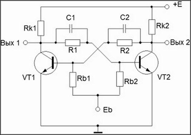 Π’Π°ΠΊΠΈΠΌ ΠΎΠ±ΡΠ°Π·ΠΎΠΌ, ΠΏΡΠΈΠ½ΡΠΈΠΏ ΡΠ°Π±ΠΎΡΡ ΡΡΠΈΠ³Π³Π΅ΡΠ° Π·Π°ΠΊΠ»ΡΡΠ°Π΅ΡΡΡ Π² ΠΏΡΠΎΡ ΠΎΠΆΠ΄Π΅Π½ΠΈΠΈ ΡΠ»Π΅Π΄ΡΡΡΠΈΡ ΠΏΡΠΎΡΠ΅ΡΡΠΎΠ². ΠΡΠ»ΠΈ Π½Π° ΡΡ Π΅ΠΌΡ ΠΏΠΎΠ΄Π°ΡΡΡΡ Π½Π°ΠΏΡΡΠΆΠ΅Π½ΠΈΠ΅ Ek ΠΈ Eb, ΡΠΎ Π±ΠΈΠΏΠΎΠ»ΡΡΠ½ΡΠΉ ΠΊΠ»ΡΡ VT1 Π½Π°ΡΠΈΠ½Π°Π΅Ρ ΡΠ°Π±ΠΎΡΠ°ΡΡ Π² ΡΠ΅ΠΆΠΈΠΌΠ΅ Π½Π°ΡΡΡΠ΅Π½ΠΈΡ, Π° VT2 β ΠΎΡΡΠ΅ΡΠΊΠΈ.
