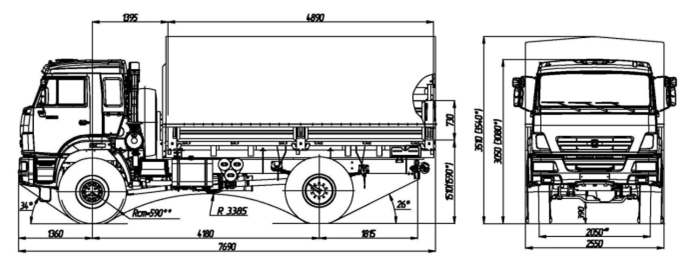 Размеры грузовика КамАЗ 5350По габаритам и весу КамАЗ 5350 имеет следующие показатели: