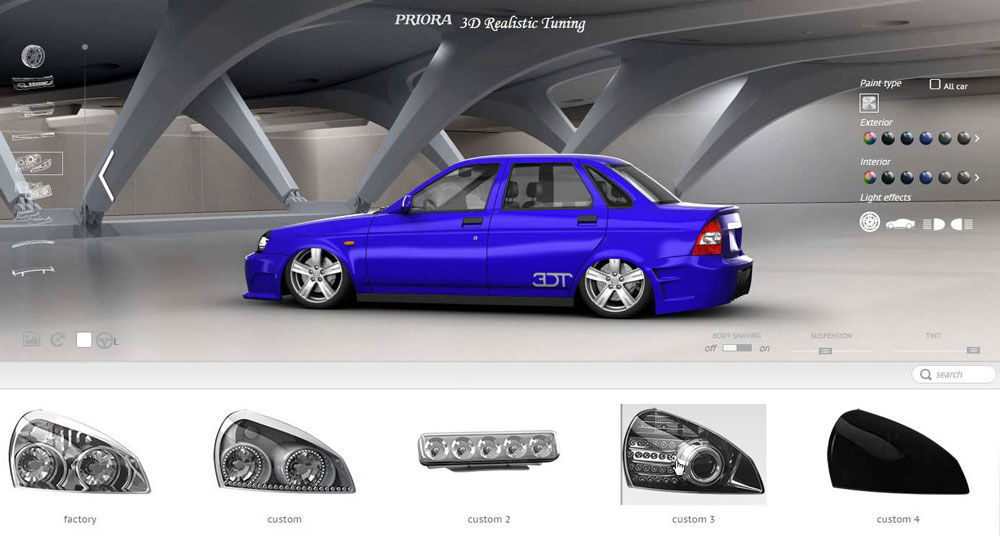 — 3D-конфигуратор, не имеющий аналогов в мире. Широкий выбор моделей и разнообразие деталей для тюнинга позволят вам создать автомобиль мечты.