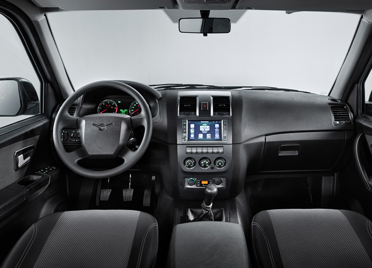 За счет высокой посадки отзывы говорят о хорошей обзорности. Зеркала и приборная панель очень информативны. Между передними сиденьями теперь появился подлокотник. Кстати, сами кресла обшиты натуральной кожей. Но опять же, в базовой комплектации заменяет ткань. В салоне появился однозонный климат-контроль. На дверных картах — удобные кнопки управления стеклоподъемниками (здесь они на электроприводе). Что ж, с дизайном «Ульяновск» благородно постарались. Однако отзывы владельцев отмечают прежний прочный пластик.