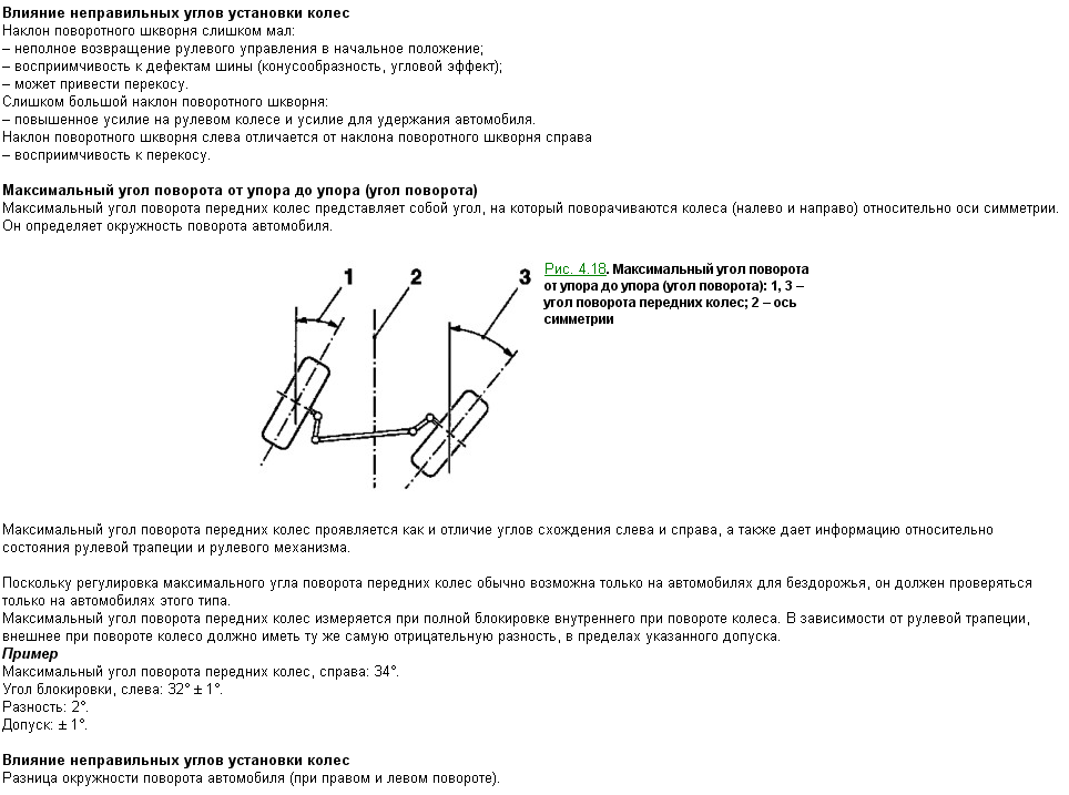 Чтобы автомобиль разворачивался правильно и плавно, каждое колесо должно вращаться по кругу. Поскольку внутреннее следует по кругу с меньшим радиусом, оно, на самом деле, делает более крутой поворот, чем внешнее. Если вы нарисуете линию, перпендикулярную каждому колесу, они будут пересекаться в центральной точке поворота. Геометрия рулевой тяги заставляет внутреннее колесо поворачиваться больше, чем внешнее.