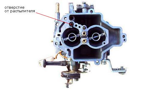 на задней части карбюратора должен быть заглушен.