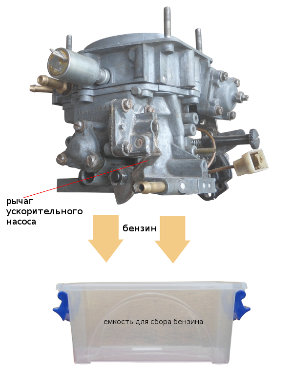 форсунку(и) ускорительного насоса, чтобы выбрасываемый бензин мог