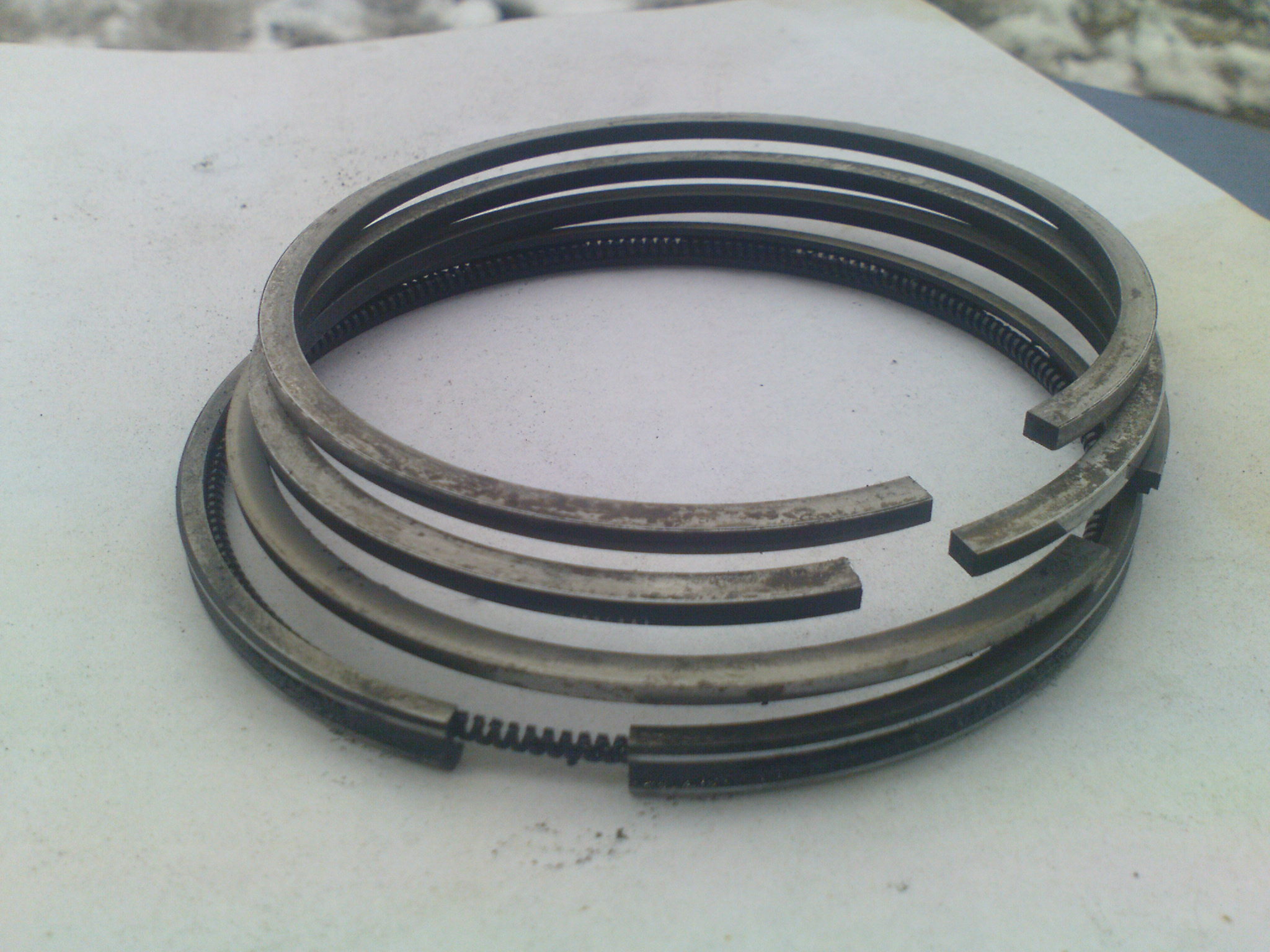 Дело в том, что кольца еще нужно правильно расположить на поршне, чтобы замки колец (место пропила) не попадали друг на друга. Проще говоря, нужно, чтобы пропил нижнего кольца не был расположен прямо над пропилом верхнего кольца.