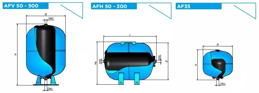 Выбирая форму гидробака, исходят из размеров технического помещения, где они будут установлены. Все зависит от габаритов устройства: какое лучше впишется в отведенное для него место, такое и будет установлено, независимо от того горизонтальное оно или вертикальное.![]()