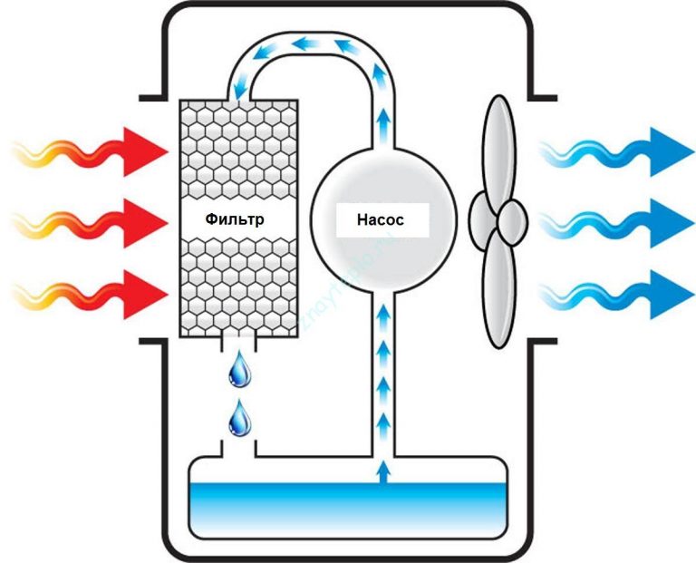 Воздух же, в свою очередь, охлаждается и поступает в комнату.