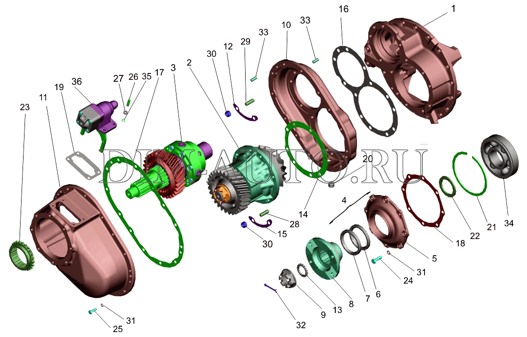 мод-ции) → Диафрагма механизма блокировки межосевого дифференциала → Дифференциал межосевой