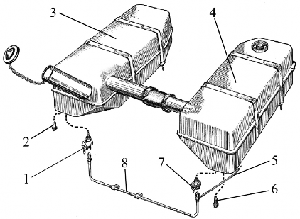 Для защиты бака от перегрева, который возможен из-за соприкосновения бака с трубой выхлопной системы, используются теплоизоляционные прокладки.