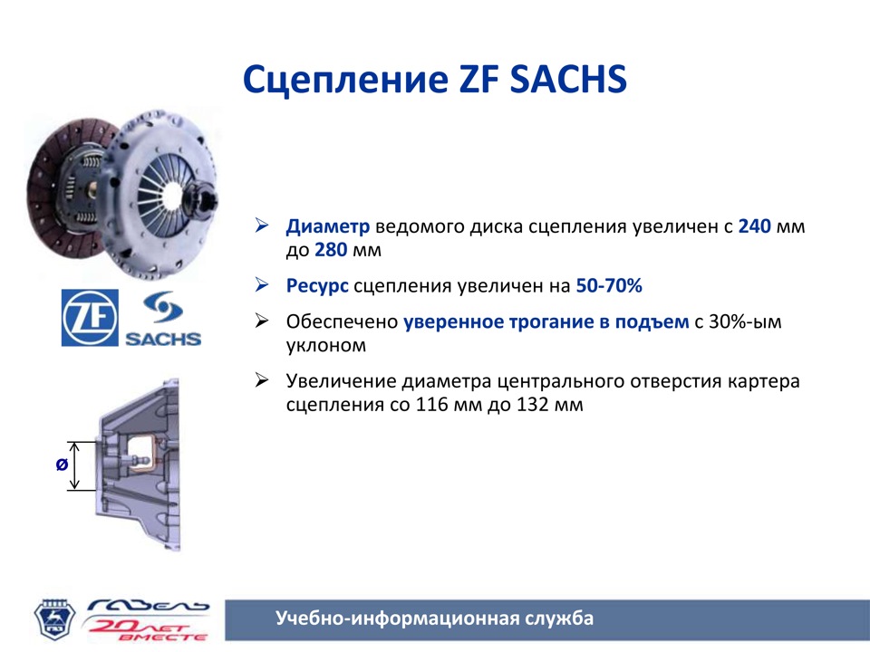 Сцепление предназначено для кратковременного отсоединения и соединения при переключении скоростей ДВС и коробки передач. Узел состоит из маховика, нажимного и ведомого диска, вилки выключения.