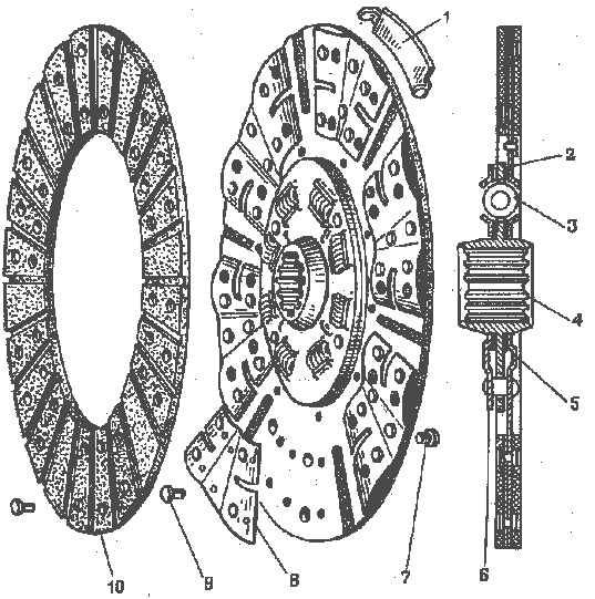 Элемент с двух сторон имеет фрикционные накладки. Именно с их помощью он принимает на себя вращения от ведущего диска.