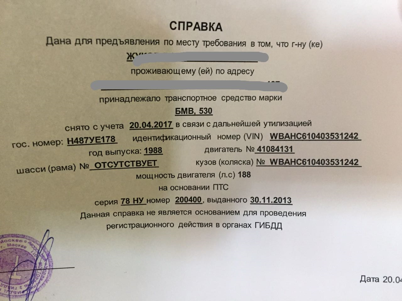 В том случае, если вся документация имеется на руках, плюс машина снята с учета, можно отправиться за получением справки, которая разрешит утилизацию транспортного средства. При этом нужно внести налог за период, когда авто пребывало в собственности владельца.