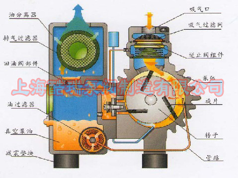 Так как лопатки ротора расположены неравномерно, то они делят рабочую полость на части неравного объема. Из-за разницы давлений газ проходит в центр устройства, очищается с помощью водно-кольцевого механизма и заполняет ячейки между лопатками ротора.