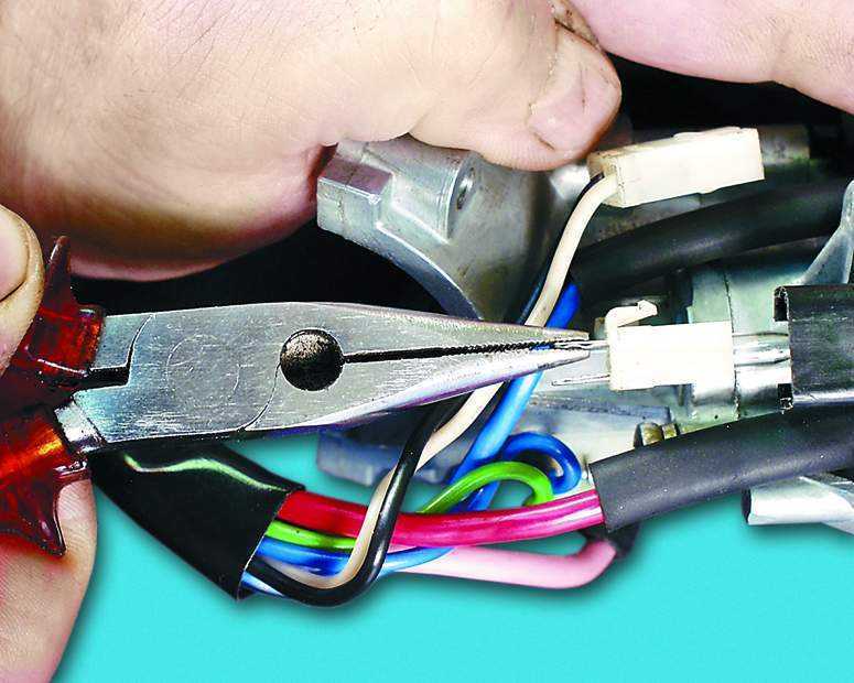 Зубилом необходимо лишь сдвинуть со своего места головки, затем все легко откручивается с помощью пассатижей. Обычно при ремонте замка зажигания меняют его контактную группу, личинку замка или микровыключатель. Но в большинстве случаев с этим давно никто не возится.