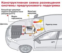 С самой системой охлаждения автотранспорта связан подогреватель. Сама собой прокачивает себя охлаждающим веществом жидкокость, идущая прямо из центра, из теплообменника, который имеет подогреватель.