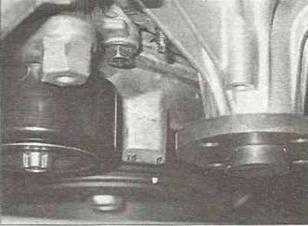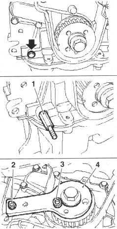 Если теперь возникает необходимость в снятии газораспределительного ремня, позаботьтесь о надежной блокировке коленчатого и распределительного валов за их зубчатые колеса с целью предотвращения выведения двигателя из положения ВМТ. |