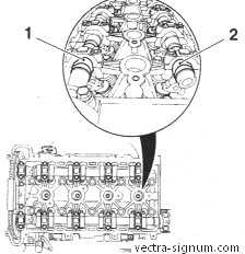 6.29 Совмещение маток (1 и 2) распределительного вала (двигатель Z19DT) |