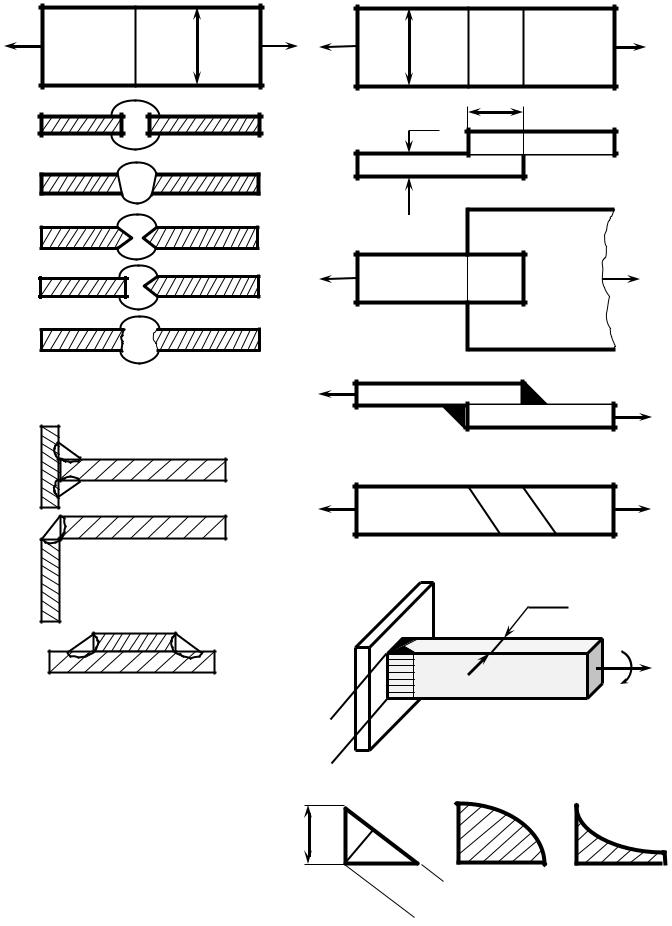 По действующему на шов усилию швы бывают фланговые, лобовые, комбинированные и косые.
