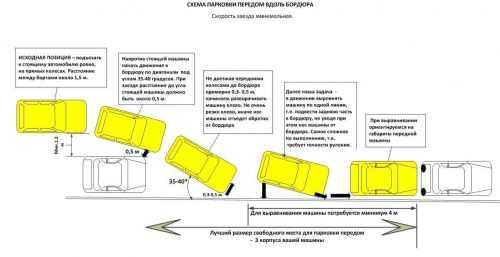 Схема парковки передом вдоль бордюра