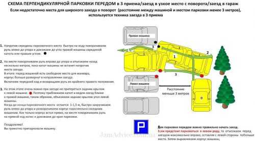 Схема парковки передом в узкое место или гараж