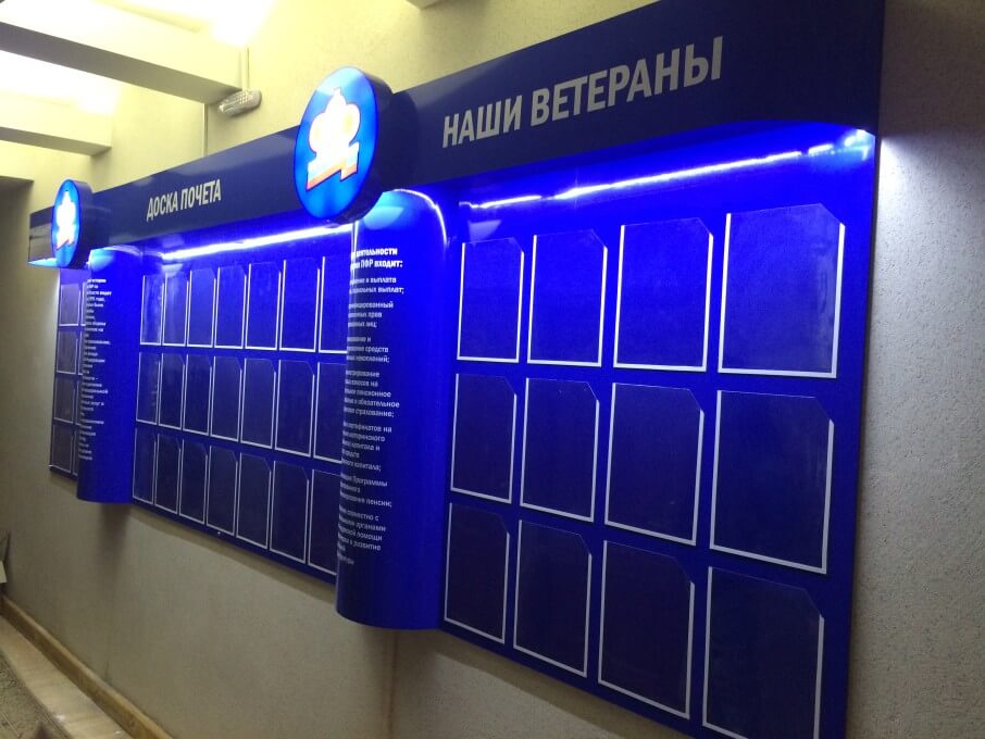 Декорируются баннерной/полноцветной печатью, некоторые элементы стенда выполняются из более дорогих материалов;