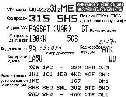 Если проанализировать и расшифровать информацию и номера двигателя Пассат б5, ВИН кода и основной таблички, тогда сложится полная картина об автомобиле, который находится перед вами.