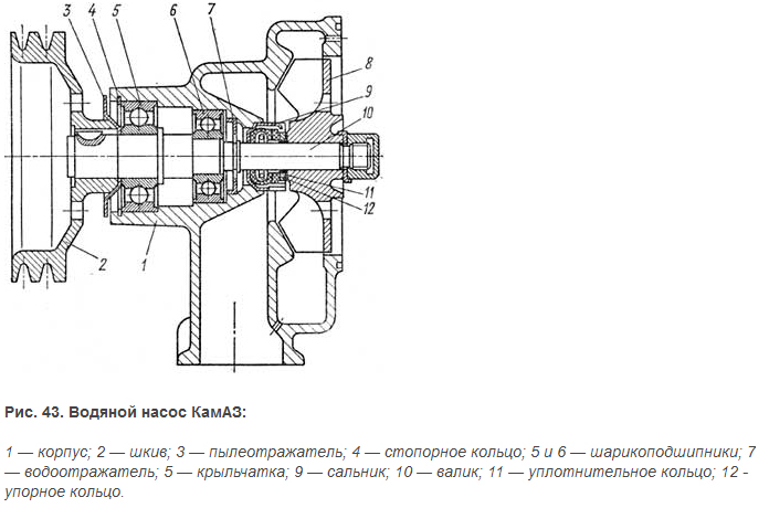 Основной причиной неисправности водяного насоса является механический износ трущихся частей: сальника, подшипников, вала, шкива. При протечке сальника антифриз попадает на подшипники и за короткое время смывает с них смазку, после чего они ломаются и вал насоса заклинивает.
