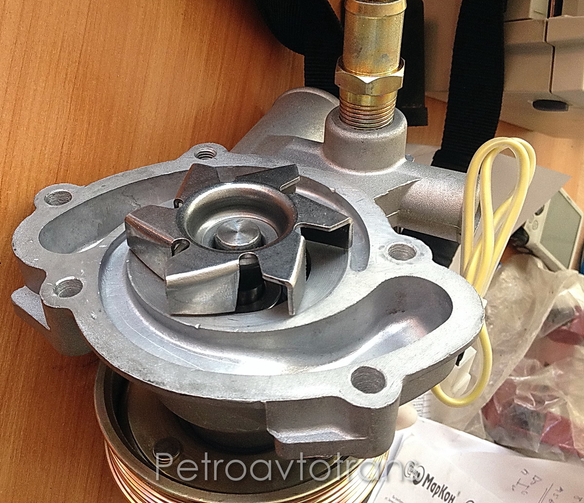 Вал насоса приводится в действие от коленвала двигателя через шкив, то есть механическим способом. Таким образом, водяная помпа начинает работать одновременно с двигателем, и чем выше скорость автомобиля (больше обороты вала), тем активней идет движение антифриза в системе.
