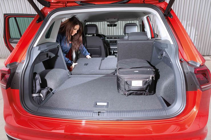 Tiguan — один из самых удобных автомобилей в своем классе для высоких пассажиров благодаря большему пространству над головой, хотя оно уменьшается, если установить люк на крыше. Задние сиденья сдвигаются назад и вперед на 170 мм, чтобы увеличить пространство для ног или багажное отделение по желанию.