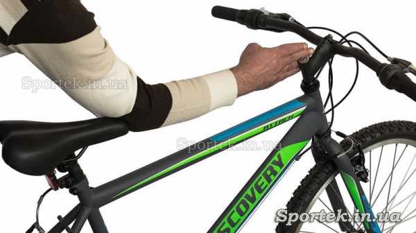 - При этом кончики пальцев должны касаться руля (плюс-минус пару сантиметров) – как Вам будет удобно самому сидеть на велосипеде.