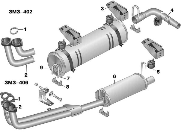 - гофра (сильфон), снижающая вибрации, защищающая кузов от резонанса и предотвращающая преждевременный износ всей системы;