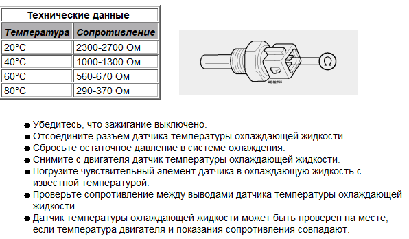 При проведении проверки допускаются небольшие отклонения от значений. Небольшие погрешности могут зависеть от разных условий и от самого датчика. Часто даже у датчиков температуры охлаждающей жидкости одной модели есть незначительные различия в показаниях при одинаковых условиях измерения.
