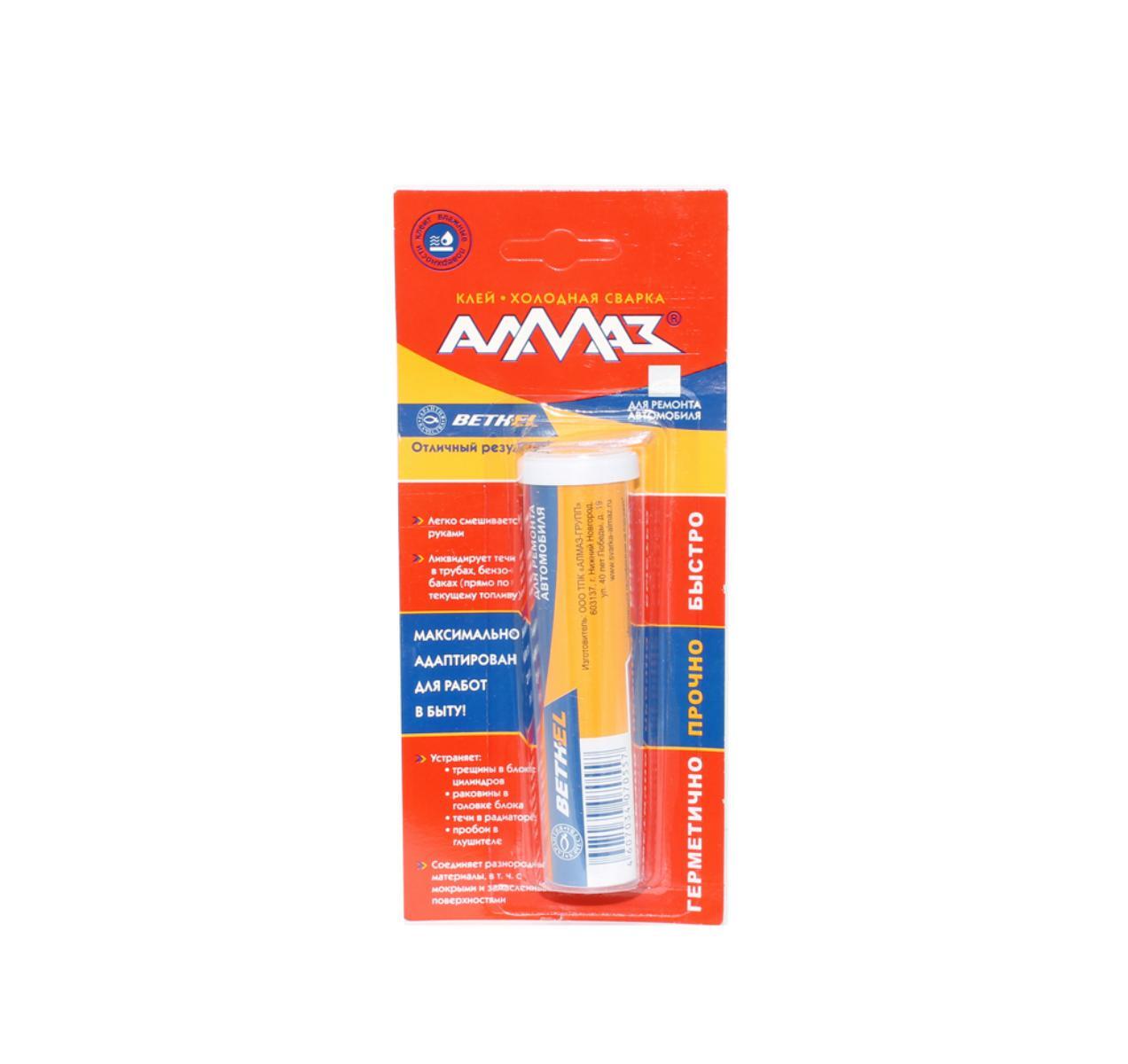 Продукт американского производителя высокого класса. Внешне выглядит, как брусок двухкомпонентной замазки, запакованный в цилиндрическую пластиковую емкость. Вес емкости около 57 гр. Благодаря тому, что в состав сварки, помимо пластификатора и отвердителя, входит еще и металлический наполнитель, ее можно применять для ремонта автомобильных частей: