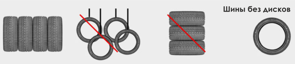 Схематически хранение шин с дисками и без Вы можете увидеть на картинке ниже:
