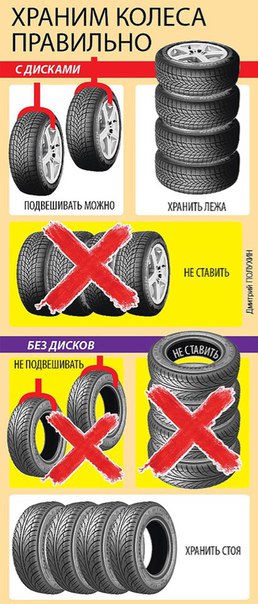 Правила хранения покрышек с дисками и без