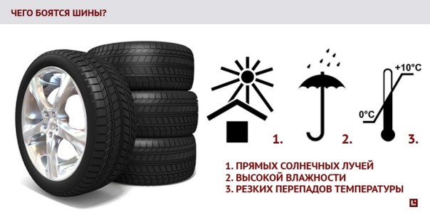 Оптимальными местами для хранения покрышек являются кирпичные или шлакоблочные (но не металлические сборные) отапливаемые гаражи, сухие подогреваемые подвалы, кладовки. Неотапливаемые помещения, открытые балконы и площадки – табу.