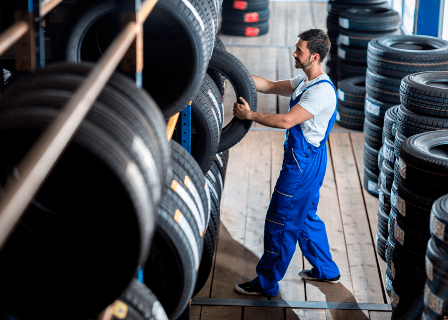 mann arbeitet auf lager — склад для хранения шинMann arbeitet auf Lager