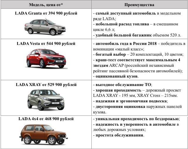 Вы можете в удобной форме узнать различия автомобилей LADA всех семейств и комплектаций.
