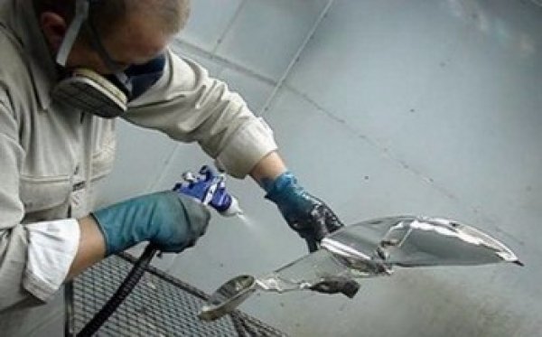 - Пока поверхность еще не высохла, наносится модификатор, за ним растворитель. Реакция между ними приводит к образованию необходимого зеркального покрывающего слоя. Снова изделие промывается водой и сушится направленной струей воздуха.