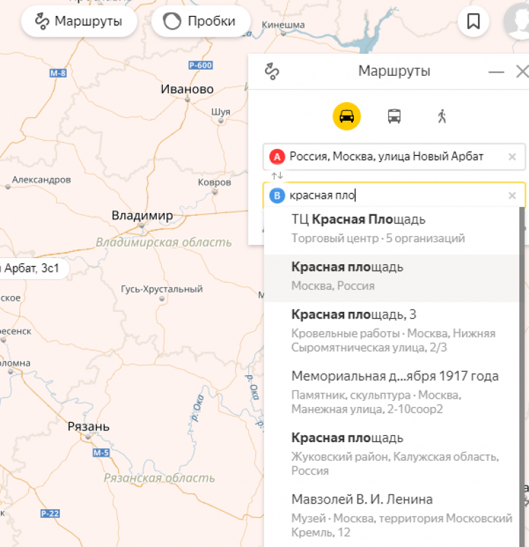 Построенный автомобильный маршрут можно изменить. Выберите предпочтительный для вас вариант проезда: